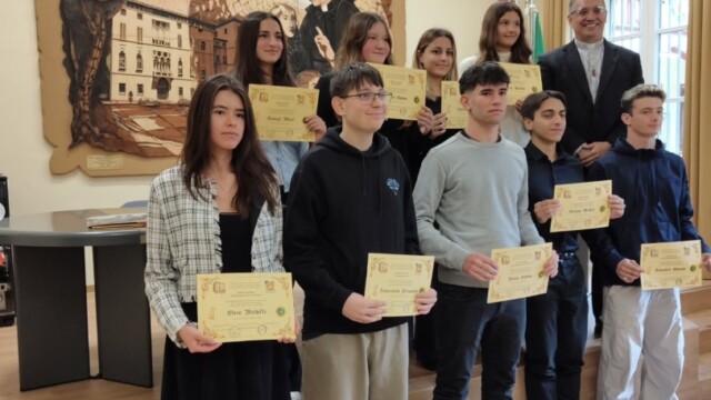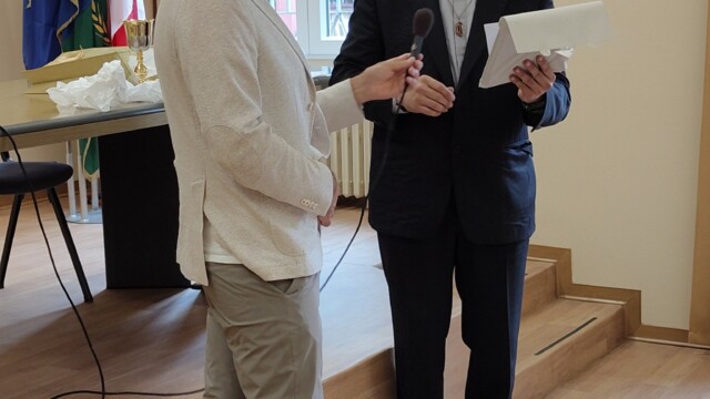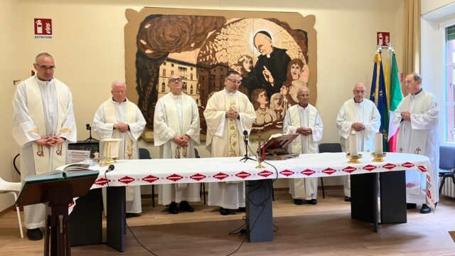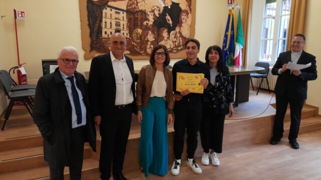 Sabato 27 settembre 2025 la nostra scuola ha festeggiato i 25 anni di Ordinazione Sacerdotale di P. Giovanni Sanavio, nostro Direttore. Come da programma, alle 9.00 P. Sebastiano De Boni, Dirigente Scolastico delle Scuole Rogazionisti di Padova ha presentato ad un pubblico di 130 persone tra exallievi, autorità, dipendenti, professori ed amici dell’Istituto, un’interessantissima ricerca sul passaggio, in Italia, dagli orfanotrofi rogazionisti alle scuole paritarie. Alle 10.00 sono state consegnate ai dieci migliori studenti delle scuole rogazionisti di Desenzano delle borse di studio dedicate alla memoria di P. Annibale, P. Palma, P. Bettoni, P. Rossini, P. Lazzari, P. Bini, Marco Sanavio, ecc. In particolare, una borsa di studio è stata consegnata dalla dott.ssa Lara Albiero, CEO dell’azienda “Stagnoli” di Lonato (BS), ditta famosa in tutto il mondo. Oltre alla dott.ssa Albiero, le borse di studio sono state consegnate da amici e parenti di P. Cesare Bettoni, P. Luigi Lazzari e P. Giacomo Alberto Rossini, dalla prof.ssa Alessandra Pianalto, Presidente della ONLUS Amici dell’Antoniano, dal sig. Antonio Tosoni, Presidente dell’Unione Exallievi, da P. Matteo Sanavio, rettore dello Studentato Internazionale Rogazionista di Roma, dal Prof. Fiorenzo Pienazza, Dirigente Scolastico della nostra scuola, dal Sindaco di Desenzano, il dott. Guido Malinvero e dalla dott.ssa Cristina Degasperi, assessore con delega a Servizi per il Diritto allo Studio; Politiche Educative, Politiche Giovanili; Ambiente ed Ecologia, sempre del comune di Desenzano. Alle 11.00 si è celebrata una SS. Messa solenne in Aula Magna con la partecipazione, oltre che dei padri della comunità, di Don Alberto Giusti, Vicario Foraneo, di P. Vito Muscillo, ex direttore della nostra opera, di P. Sebastiano de Boni e di P. Matteo Sanavio e, alle 12.00, si è concluso il tutto con un ricco buffet preparato dalla ditta Diego Losio di Castenedolo (BS).